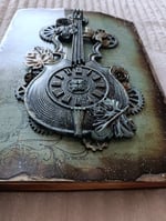 A beautiful handmade journal with a cello on the front cover with a steampunk influence. A great gift for a music or steampunk lover.