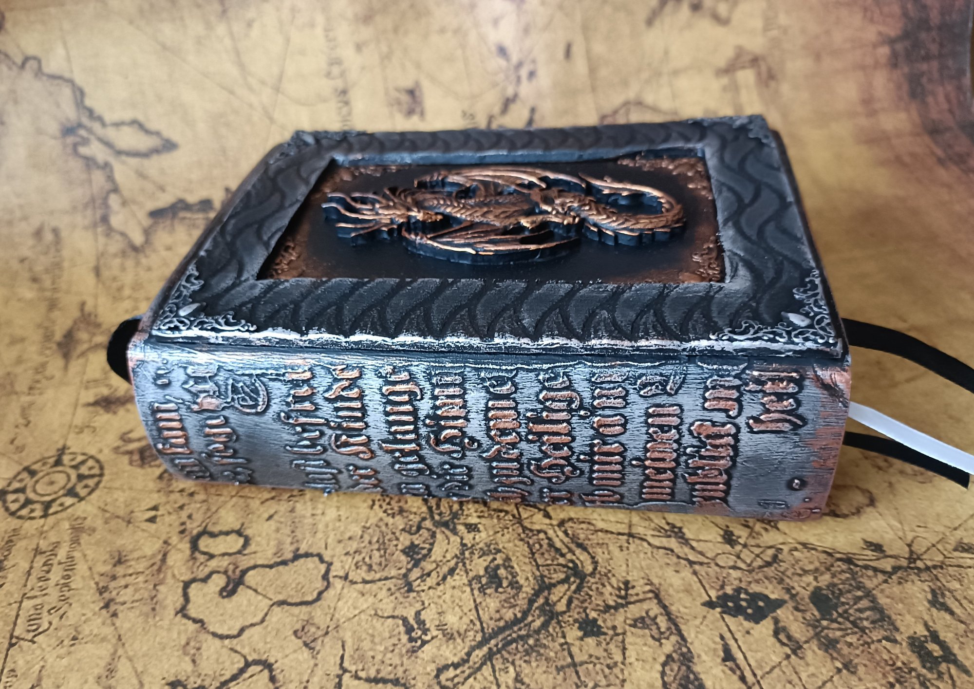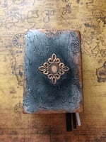 A beautiful handmade A5 softcover, mixed media altered 700 cream blank A6 notebook in black and metallic copper and silver colour with a dragon. A unique present for a loved one.